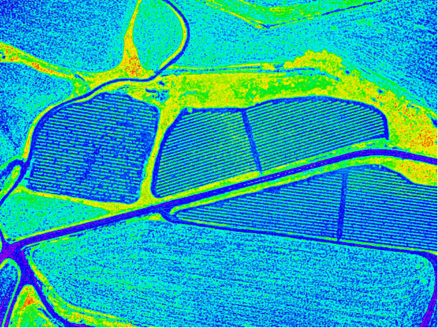 ÉÏ×óͼ£ºNIRÕýÉäÓ°Ïñ£¬ÉÏÓÒͼNVI£»ÏÂ×óͼ£ºGNDVI£¬ÏÂÓÒͼNDVI